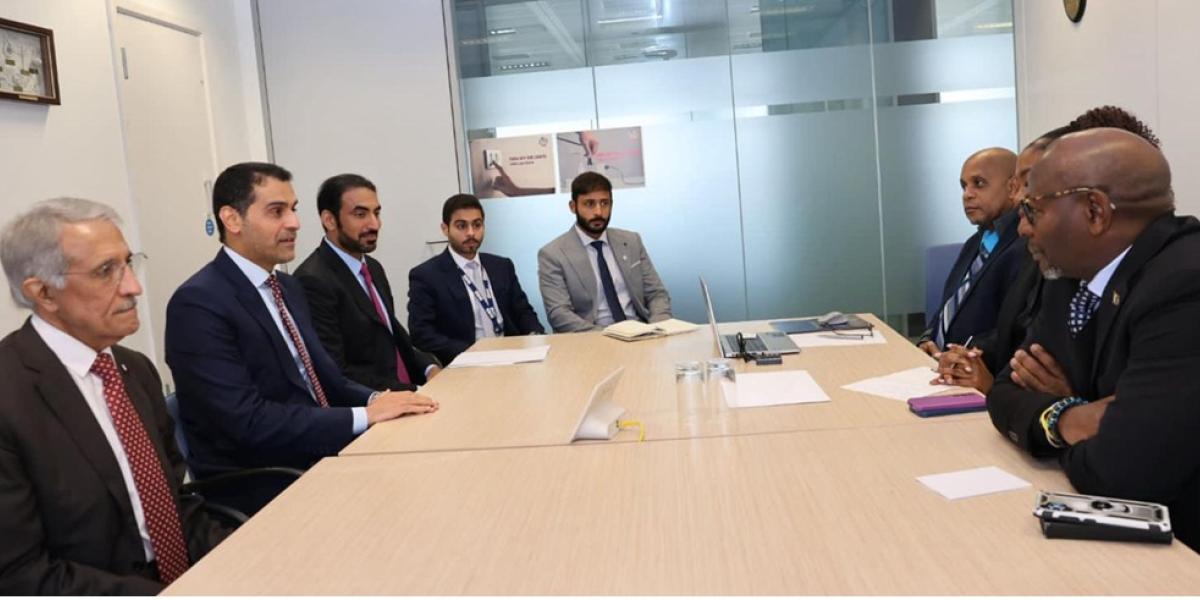 اجتمع سعادة الشيخ محمد بن عبدالله بن محمد آل ثاني، وزير المواصلات، مع سعادة السيد أورال هولدر، المفوض السامي لبربادوس لدى المملكة المتحدة، وذلك على هامش مشاركة سعادتهما في أعمال الدورة الرابعة والثلاثين للجمعية العمومية للمنظمة البحرية الدولية (IMO)، المنعقدة في العاصمة البريطانية لندن.