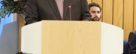 استعرض خلالها جهود الدولة في تطوير قطاع النقل البحري وزير المواصلات يلقي كلمة خلال الجلسة العامة لاجتماعات عمومية منظمة (IMO)