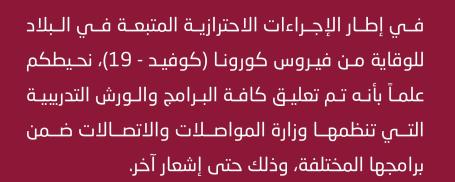 تعليق كافة البرامج والورش التدريبية التي تنظمها الوزارة حتى إشعار آخر