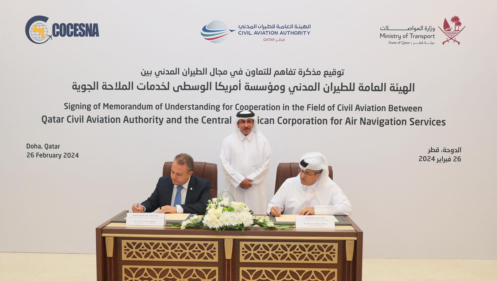 Minister of Transport H.E. Jassim Saif Ahmed Al-Sulaiti today attended the signing ceremony of a Memorandum of Understanding between Qatar Civil Aviation Authority (QCAA) and the Central American Corporation for Air Navigation Services (COCESNA), on enhancing cooperation in civil aviation.