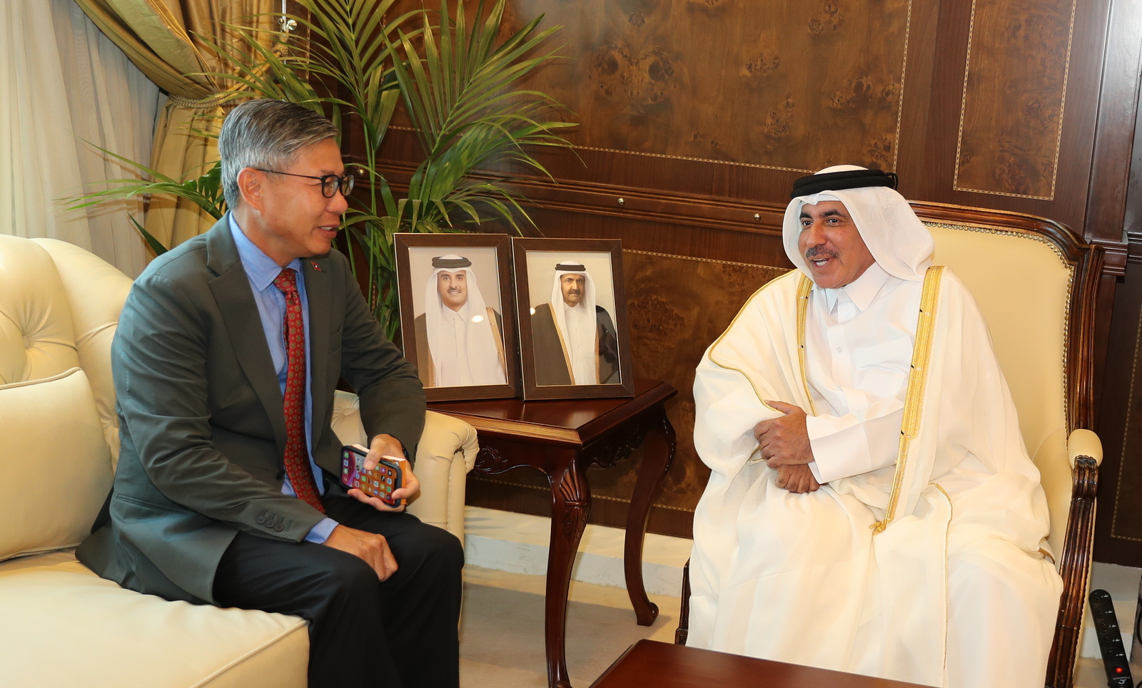 Minister of Transport HE Jassim Saif Ahmed Al-Sulaiti met with Minister of Public Works and Transport of the Lao People's Democratic Republic HE Mr. Viengsavath Siphandone.