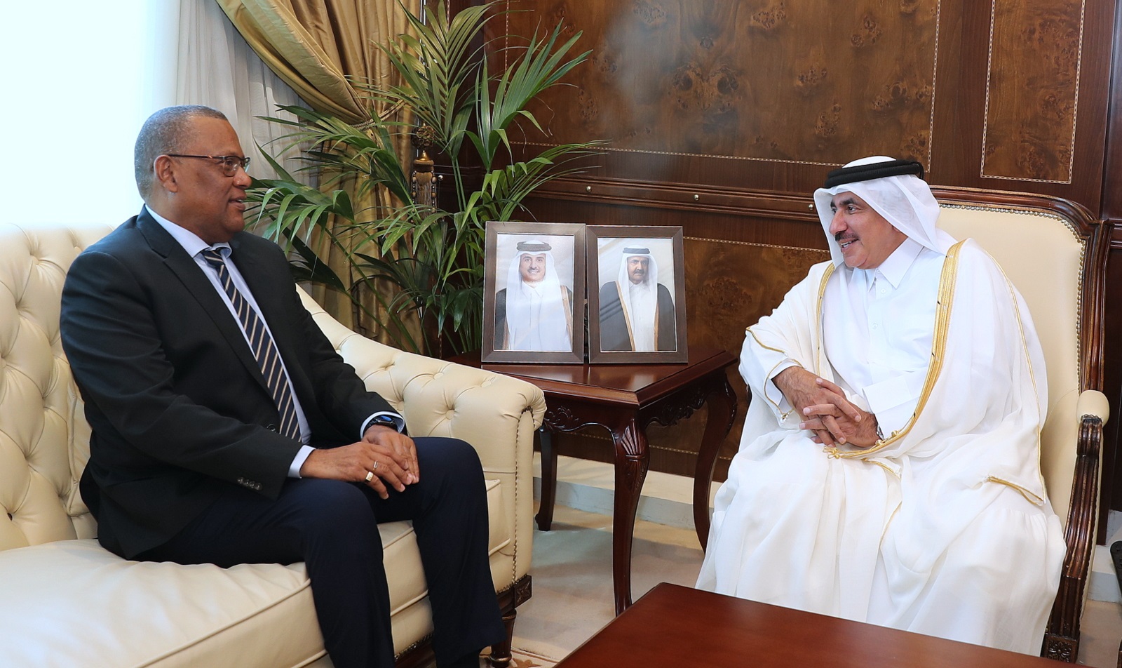 Minister of Transport H.E. Jassim Saif Ahmed Al-Sulaiti met with his Seychelles counterpart, Minister of Transport H.E. Antony Derjacques, in Ministry’s offices today.